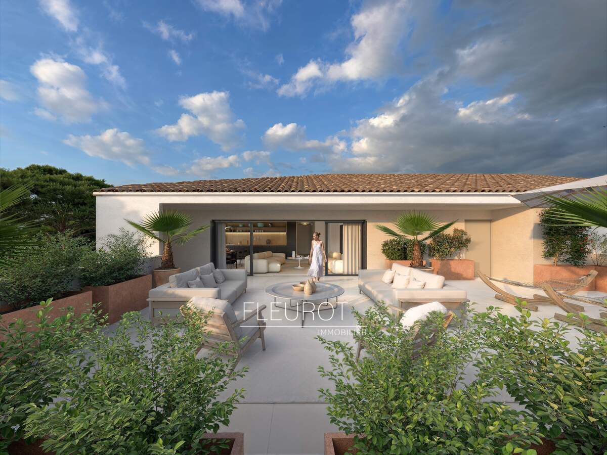 Luxury building with elevator, 5-room penthouse apartment, ideally located in the immediate vicinity of shops, the port and beaches, this 138 m² apartment comes with 130 m² of terraces offering unobstructed views of the hills and the sea. It comprises a bright 38 m² living room with high ceilings, a separate kitchen, pantry, laundry room, as well as 4 master suites, each with its own dressing room, its high-end features: electric roller shutters, aluminium joinery, numerous exterior storage spaces and 3 underground parking spaces.