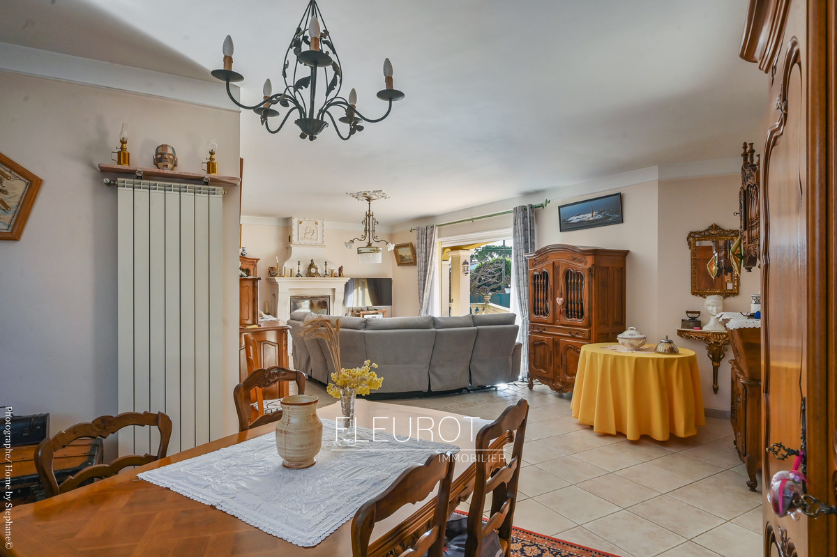 Au calme et à 500 m des PLAGES/ste Marguerite, VILLA traditionnelle T.5 avec immense garage sous-sol (117 m²), PISCINE, cuisine d'été. Parcelle de 1186 m² avec possibilité de stationner plusieurs véhicules à l'intérieur. Entrée avec vestiaire, beau séjour-salon avec cheminée/insert et clim, cuisine séparée équipée avec cellier, deux chambres, salle d'eau et w.c. A l'étage : deux belles chambres, salle d'eau et wc. Double vitrage, chauffage central gaz. Idéal pour tout faire à pieds ! Contact Martine 06.13.42.15.03 DPE C (112) ges (14) Montant moyen estimé des dépenses annuelles d'énergie pour un usage standard, établi à partir des prix de l'énergie de l'année 2021/22/23: entre 1500 et 2130 €.